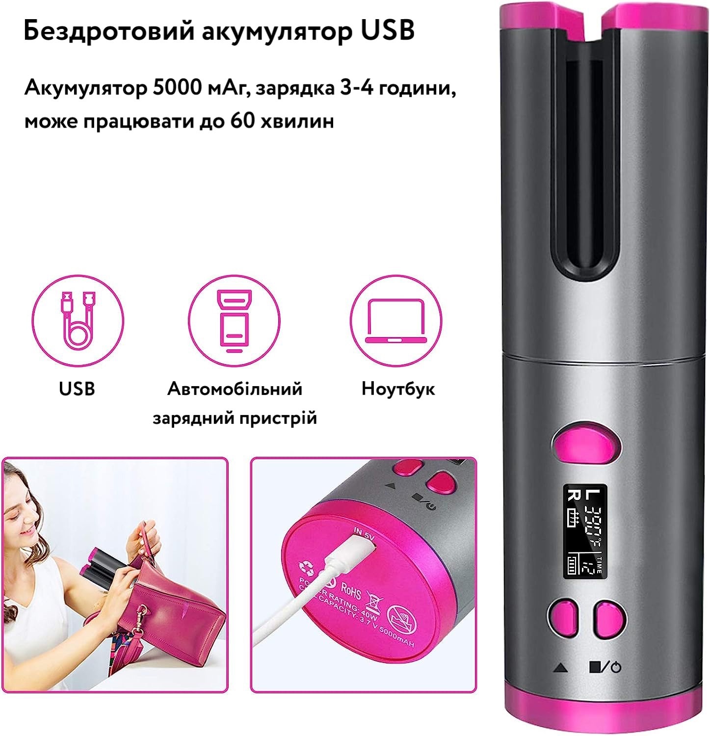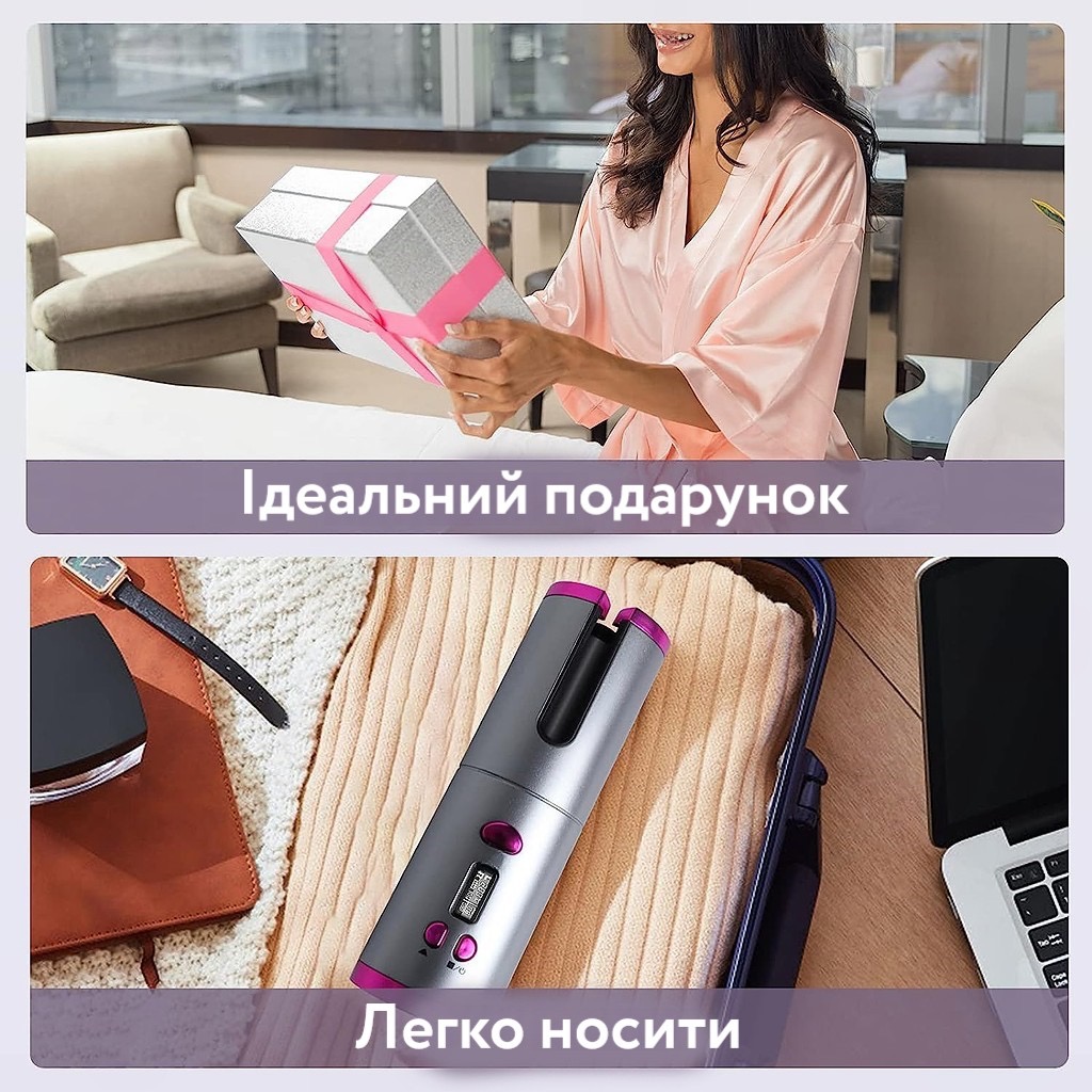 • Бездротова плойка для завивки волосся, попрощайтеся з брудним та заплутаним дизайном кабелю. Без обмежень кабелю ви можете накручувати волосся будь-де. Не вимагає навичок, заміна традиційної плойки чи палички для завивки.