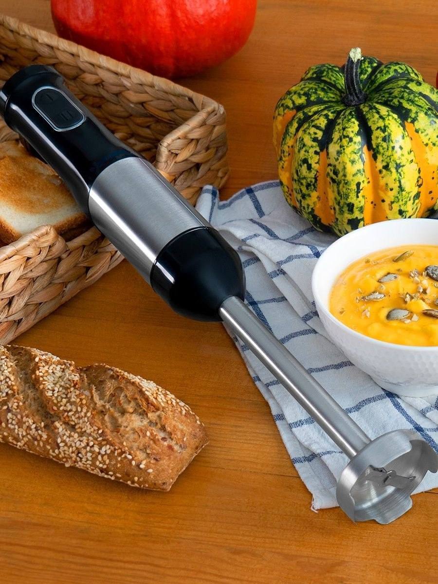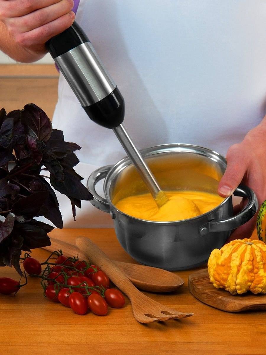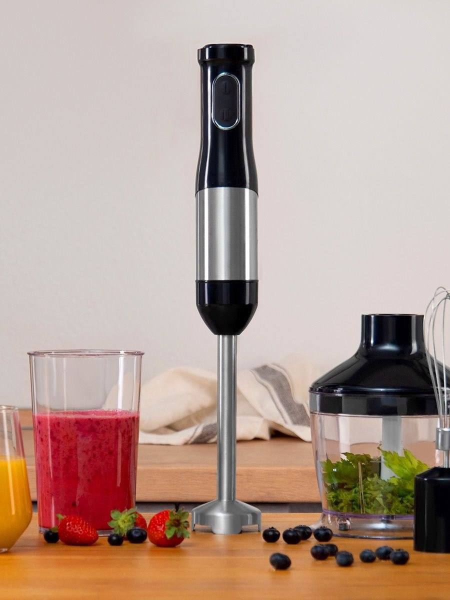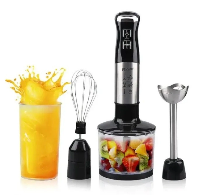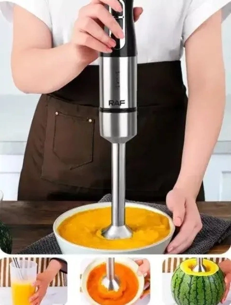 Занурювальний блендер RAF R 331 B — це мультизадачний пристрій призначений для подрібнення та збивання продуктів. Пристрій підходить для збивання білків, соусів, приготування майонезів, перетирання овочів та подрібнення різних видів горіхів. Усі компоненти виконані з високоякісної нержавіючої сталі та надійного пластику.