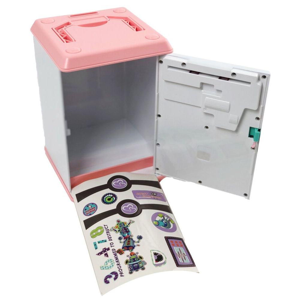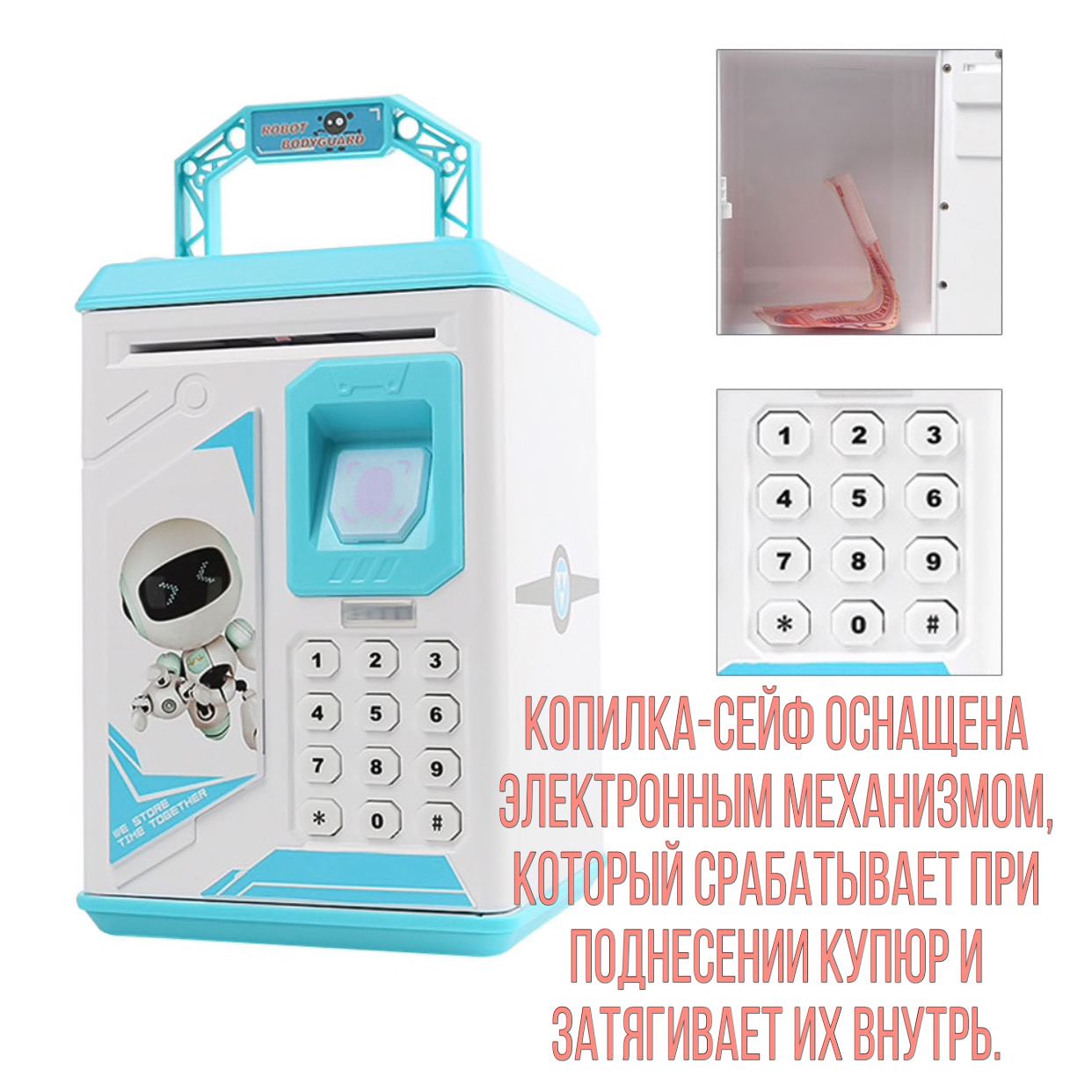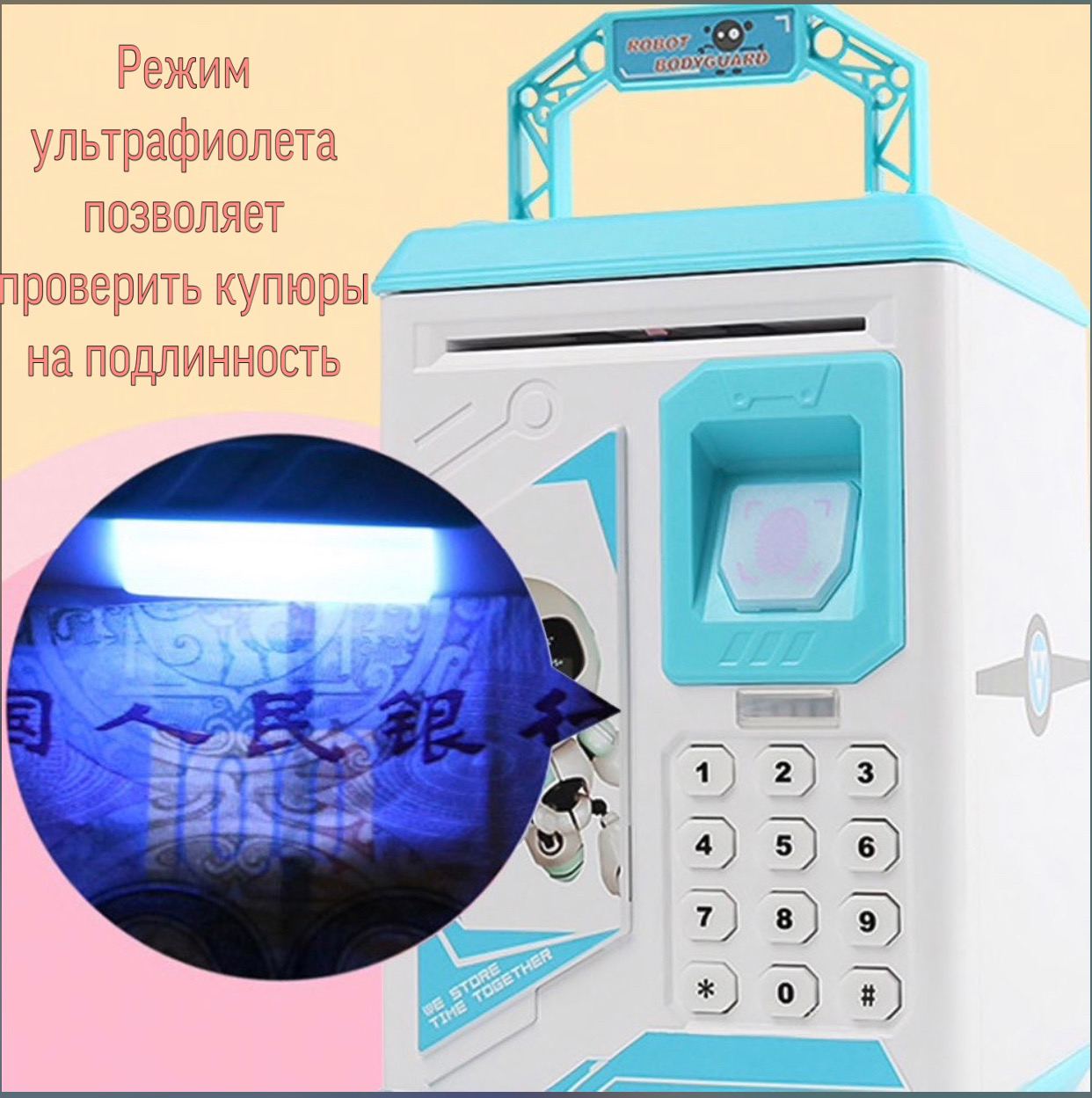 - Принимает купюры и монеты. Теперь копить деньги ваш ребёнок сможет не только копейки , но и купюры.