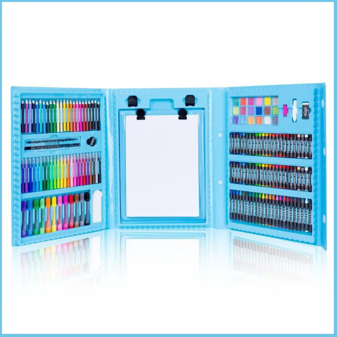 - Дитячий набір для малювання на 208 предметів – чудовий подарунок для дитини. Любов до різних аксесуарам для малювання, розфарбовування та відображення власних фантазій на папері, проявляється у всіх дітей, починаючи з самого юного віку. Валіза у вигляді розкладного кейсу продумана до дрібниць. Він має осередки, які зберігають у собі все необхідне для маленького художника.