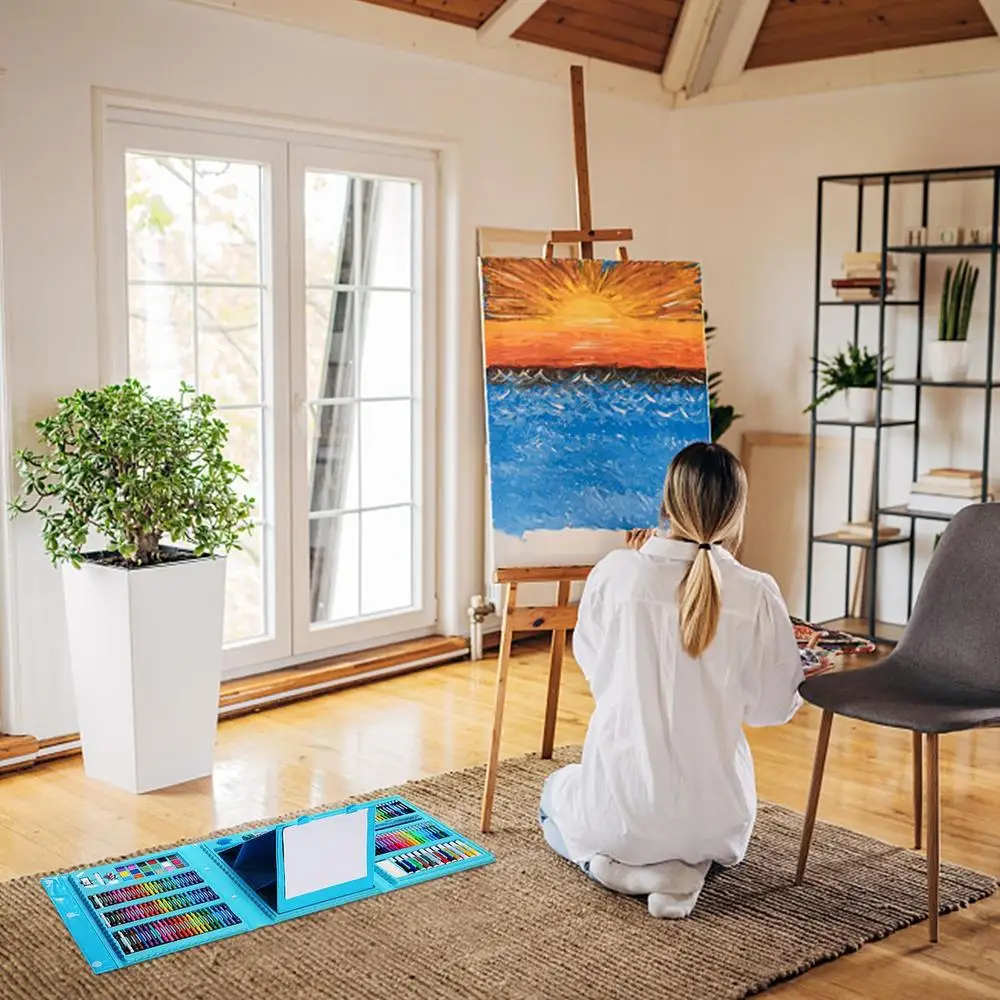 Дитячий набір для малювання з мольбертом 208 блакитних предметів.