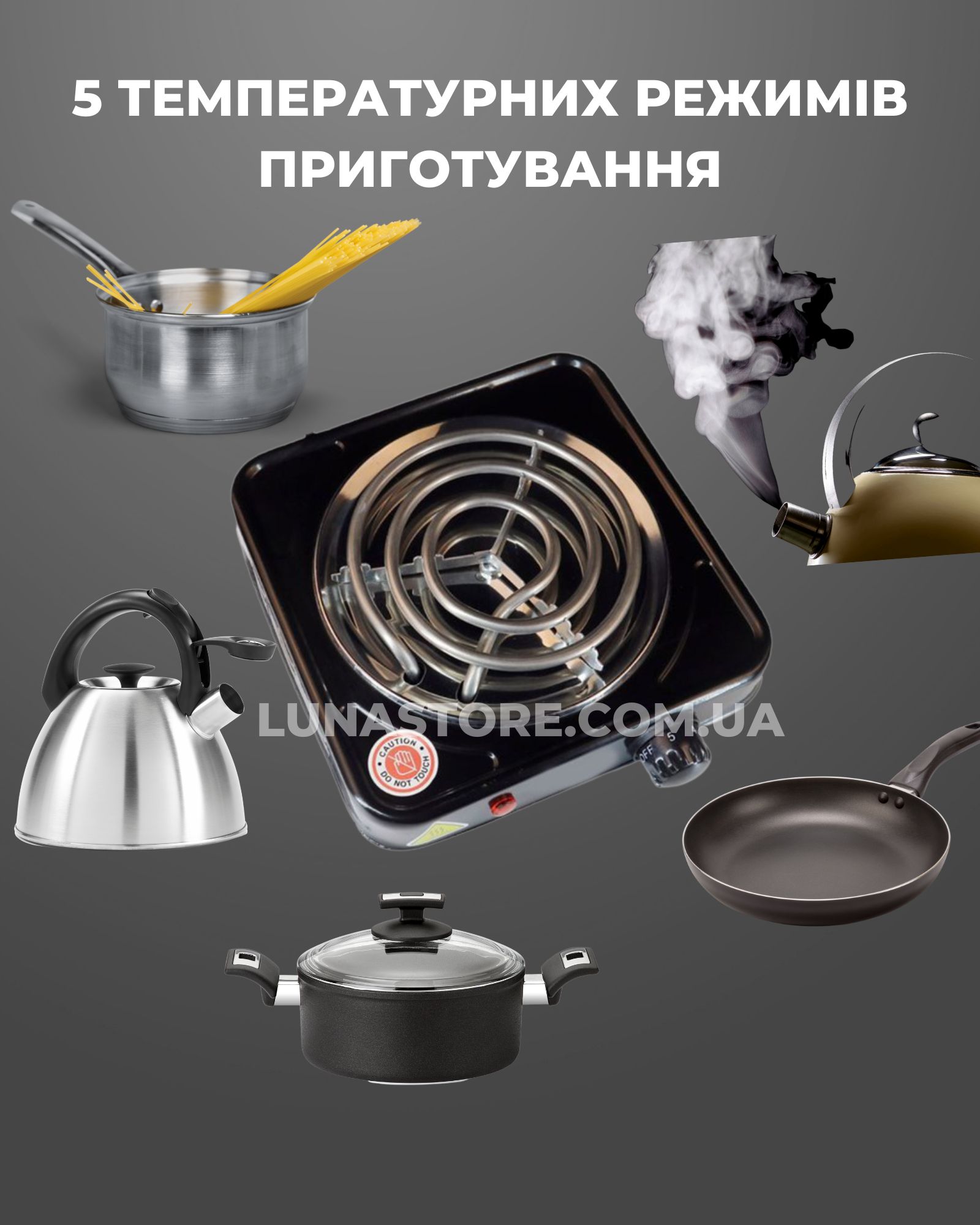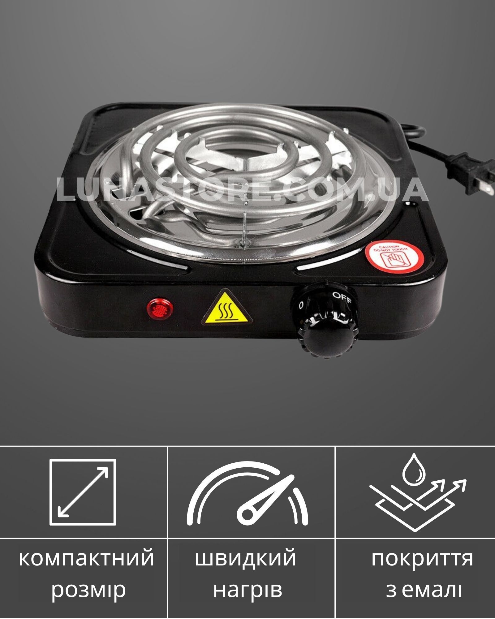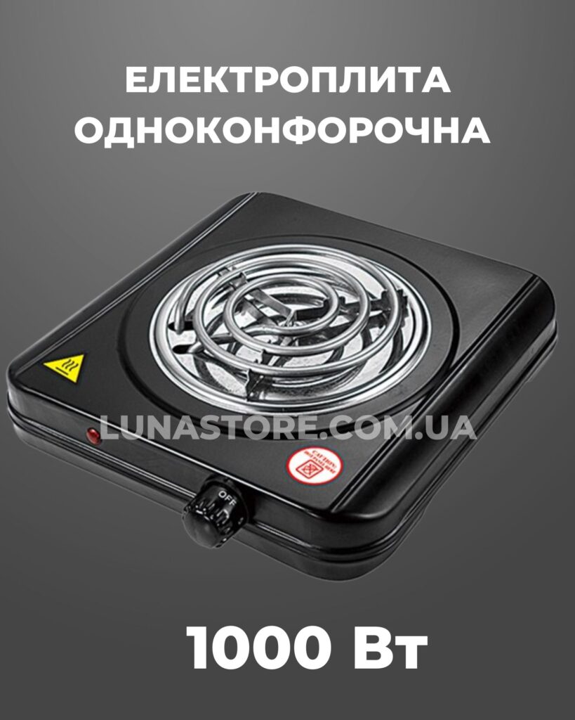 - Плита має одну електро конфорку з відкритим типом нагрівального елемента.
