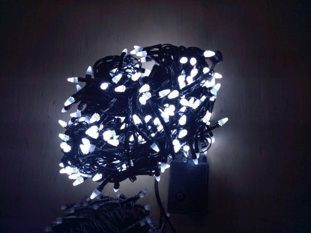 Горят диоды очень ярко. Бывают они различных цветов, и каждый цвет по своему красив. Гирлянды могут быть как однотонными так и цветными.