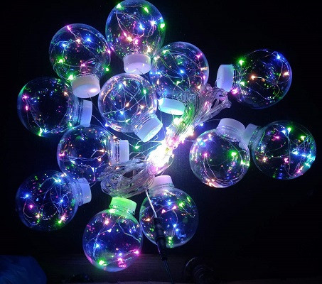 Всего гирлянда насчитывает 200 LED лампочек и 20 шариков, 8 режимов их свечения с очень удобным переключателем (в том числе и статический режим – горение без мигания).