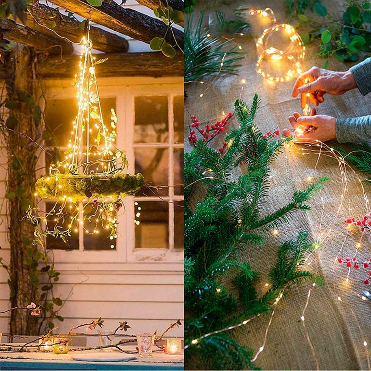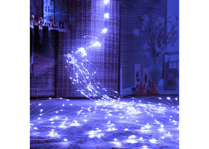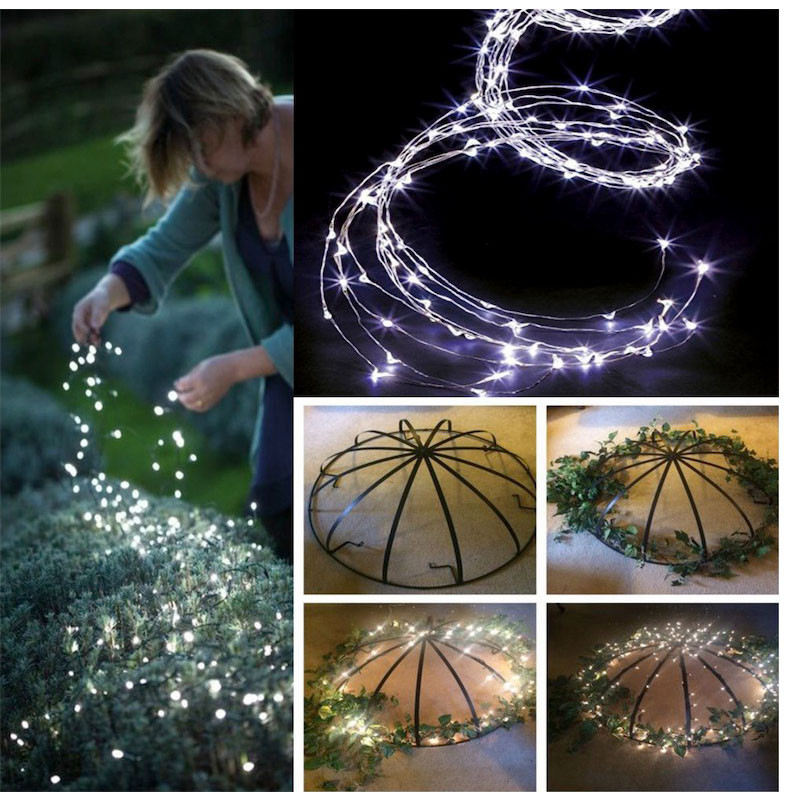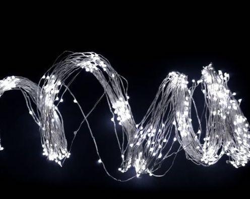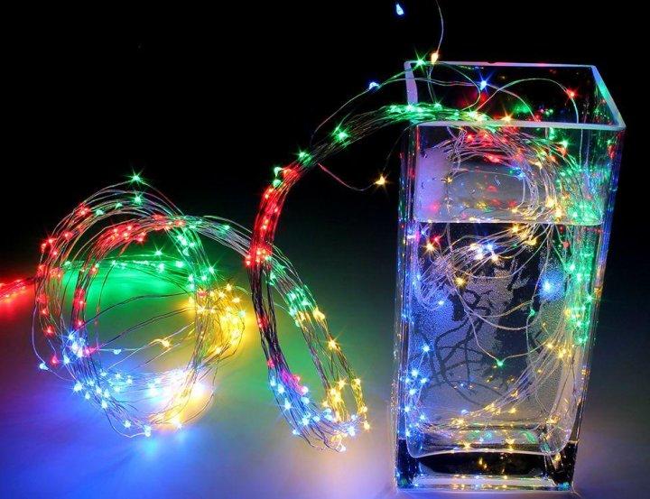 Обратите внимание, какой тонкий и незаметный провод-проволока, благодаря этому создается впечатление парящих в воздухе огоньков. Дополнительным преимуществом является то, что проволоке можно придать любую форму и она надолго сохранится неизменной. В комплекте с гирляндой есть встроенный понижающий трансформатор, что помогает значительно сэкономить электроэнергию.
