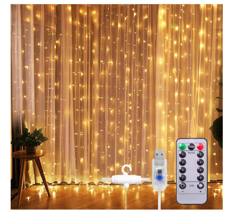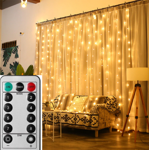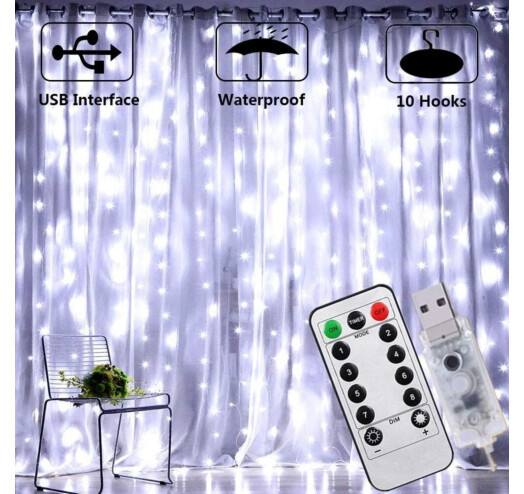 Новогодняя гирлянда нити росы 3*3м, 300 лампочек, USB
