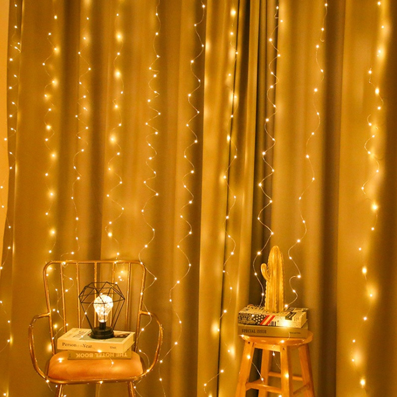 Гирлянда нити росы 3*3м USB, гирлянда штора проволока нити росы USB, новогодняя гирлянда 300 лампочек USB
