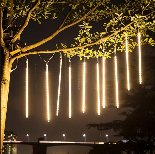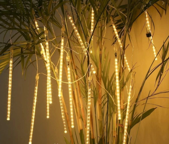 Гирлянда светодиодная тающие сосульки LED. Гирлянда уличная (outdoor) представляет собой гибкий шнур питания (базовый), на котором расположены выполненные из пластика прозрачные трубки. Поочередное свечения диодов создают эффект бегущей капли, стекающую по тающей сосульке