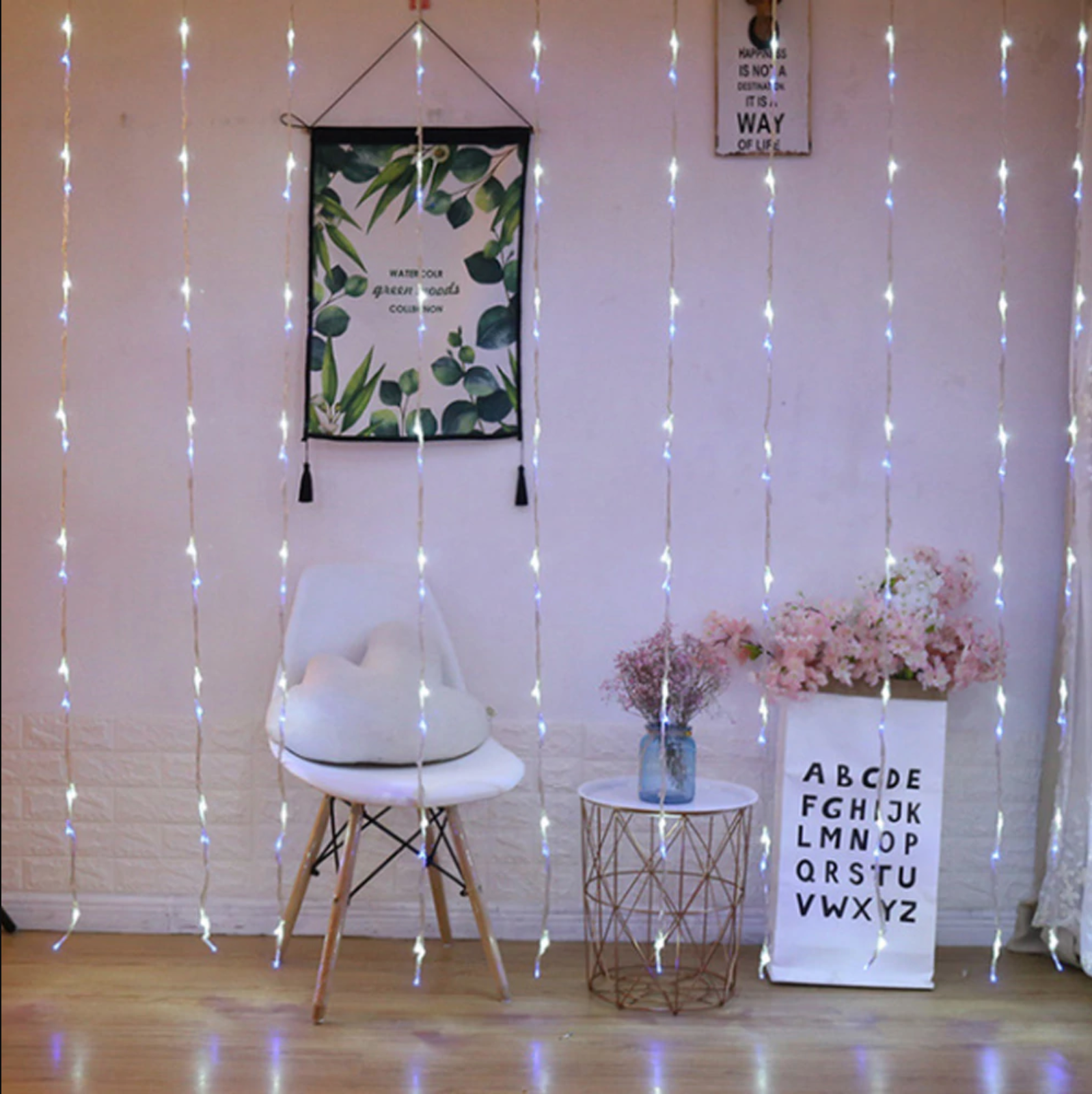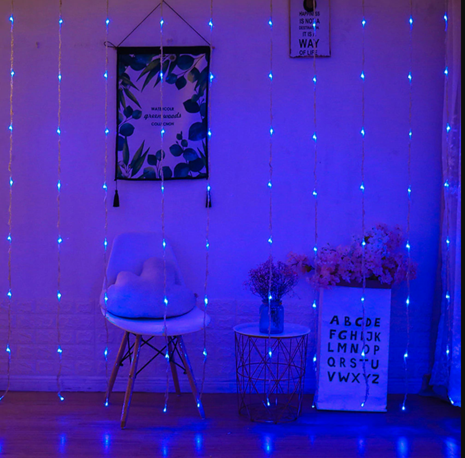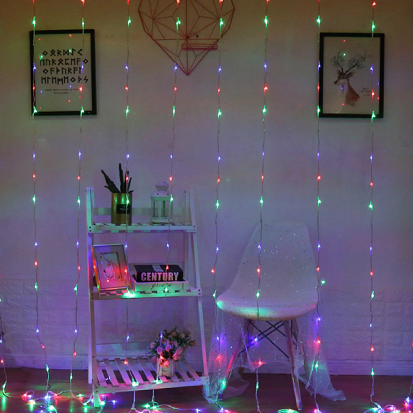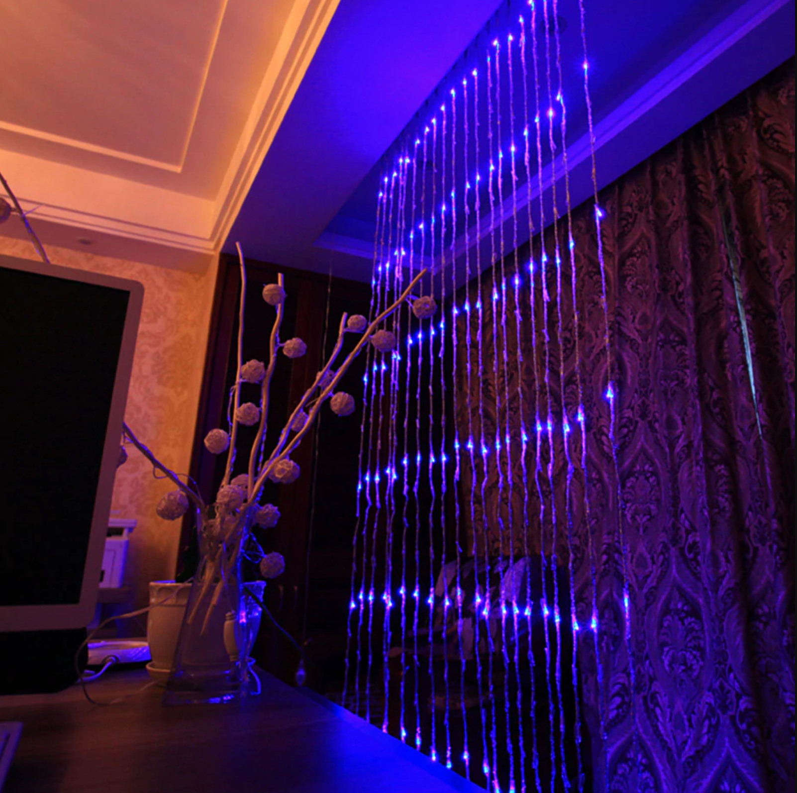 Гірлянда Водоспад є гнучкий горизонтальний шнур-шину (3м), до якого через певні проміжки падають 10 вертикальних ниток зі світлодіодними краплями. Використовуючи завісу, можна не тільки створювати красиві світлові завіси або оформляти різні площини, а й прикрашати об’ємні об’єкти.