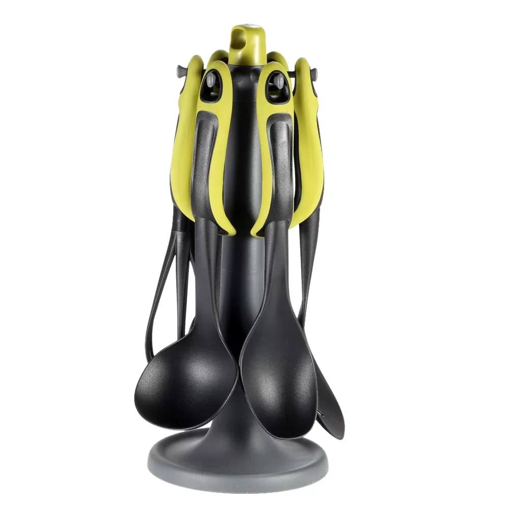 - Комплектація: ополоник; шумівка; кухарська ложка; лопатка кухонна; Вінчик; ложка для спагетті; настільна підставка.
