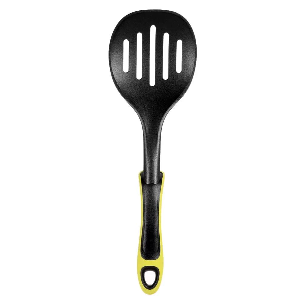 Всі предмети виготовлені з міцного пластику різних кольорів та покриті товстим шаром термостійкого харчового силікону, який не вбирає запахи, не впливає на смак і легко миється. Такі інструменти не пошкодять антипригарне або керамічне покриття посуду.