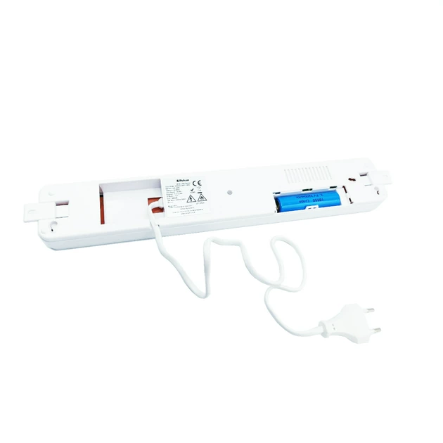 Ліхтар заряджається від мережі 220 вольт, а працює від змінного пальчикового акумулятора літій 3.7V ємністю 1200 mAh. Якщо увімкнути ліхтар при вимкненому штекері від мережі 220 вольт він горітиме. але якщо вставити штекер у мережу, він згасне. Якщо вимикати світло і зникне електрика в мережі, ліхтар автоматично загориться. Це дуже зручно для освітлення при частих відключення електроенергії.
