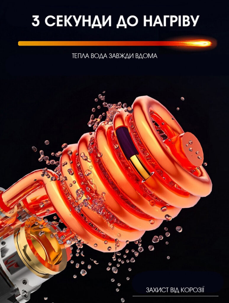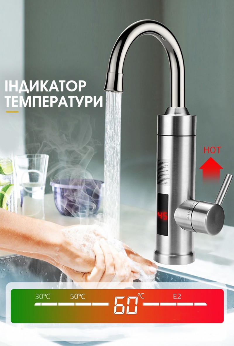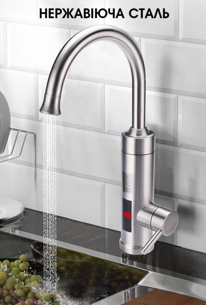 Електричні частини конструкції надійно захищені від попадання води. Відразу після установки нового нагрівача бажано користування ним маленькими дітьми під наглядом дорослих деякий час, до отримання досвіду безпечного використання. Корпус крана виготовлений з нержавіючої сталі.
