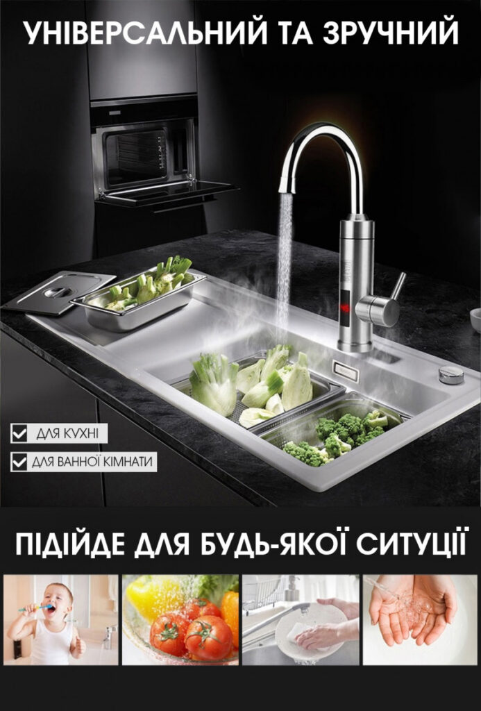 Встановити такий нагрівач можна як на кухні, так і у ванній, в гаражі – в будь-якому місці де потрібна гаряча вода і умови для цього є. Сама вигнута трубка крана може на 360 градусів обертатися щодо верткальной осі, так, що ємності для отримання гарячої води можна встановлювати навколо. Переміщенням ручки в відповідну сторону можна отримувати і холодну воду.