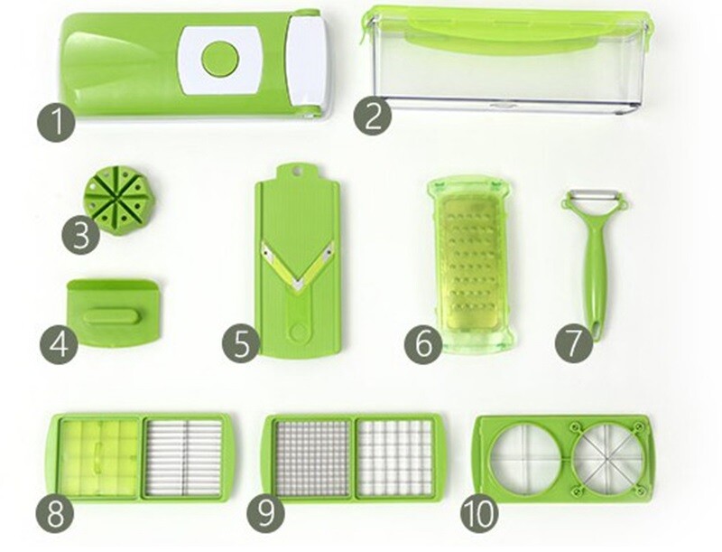 Подрібнювач продуктів Nicer Dicer стане Вашим помічником на кухні, прискорюючи процес приготування їжі. Приготування їжі стане для вас простою забавою. Ви можете подрібнити продукти найрізноманітнішими способами: