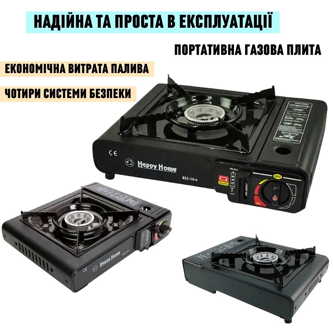 Плита газова туристична Happy Home з п’єзопідпалом забезпечить Вас теплим обідом та гарячим чаєм у будь-яких погодних умовах.