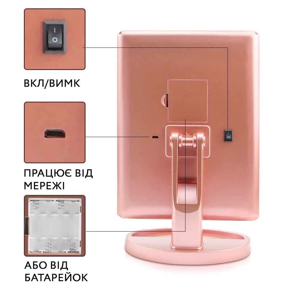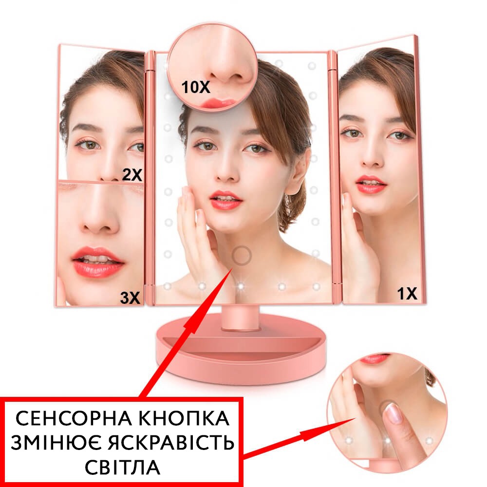 - Світлодіодне підсвічування для якісного макіяжу;
