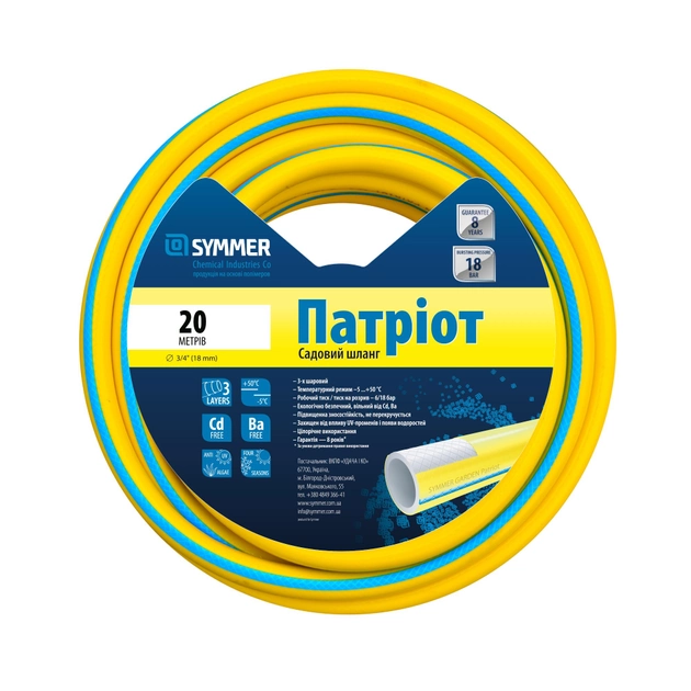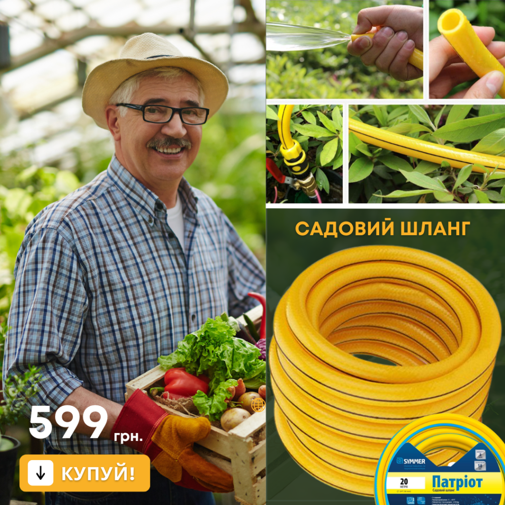 Шланг садовий харчовий поливальний Symmer Garden “Патріот” жовтий