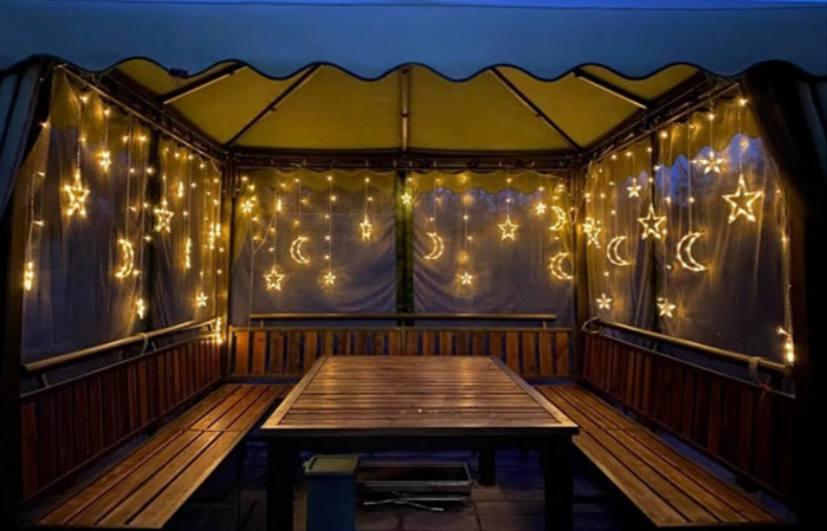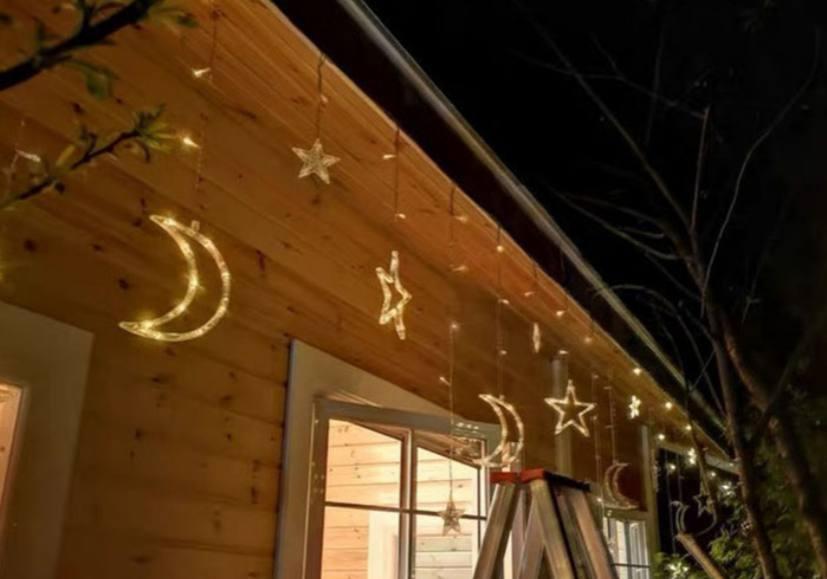 Всего гирлянда насчитывает 138 LED лампочек белого теплого цвета и 8 режимов их свечения с очень удобным переключателем (в том числе и статический режим – горение без мигания).