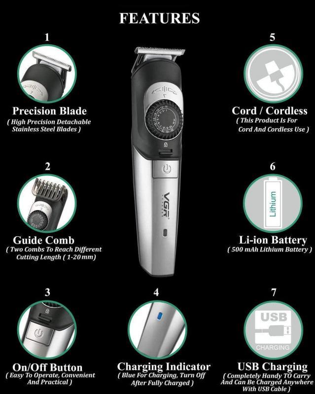 Аккумуляторная машинка для стрижки волос и бороды VGR