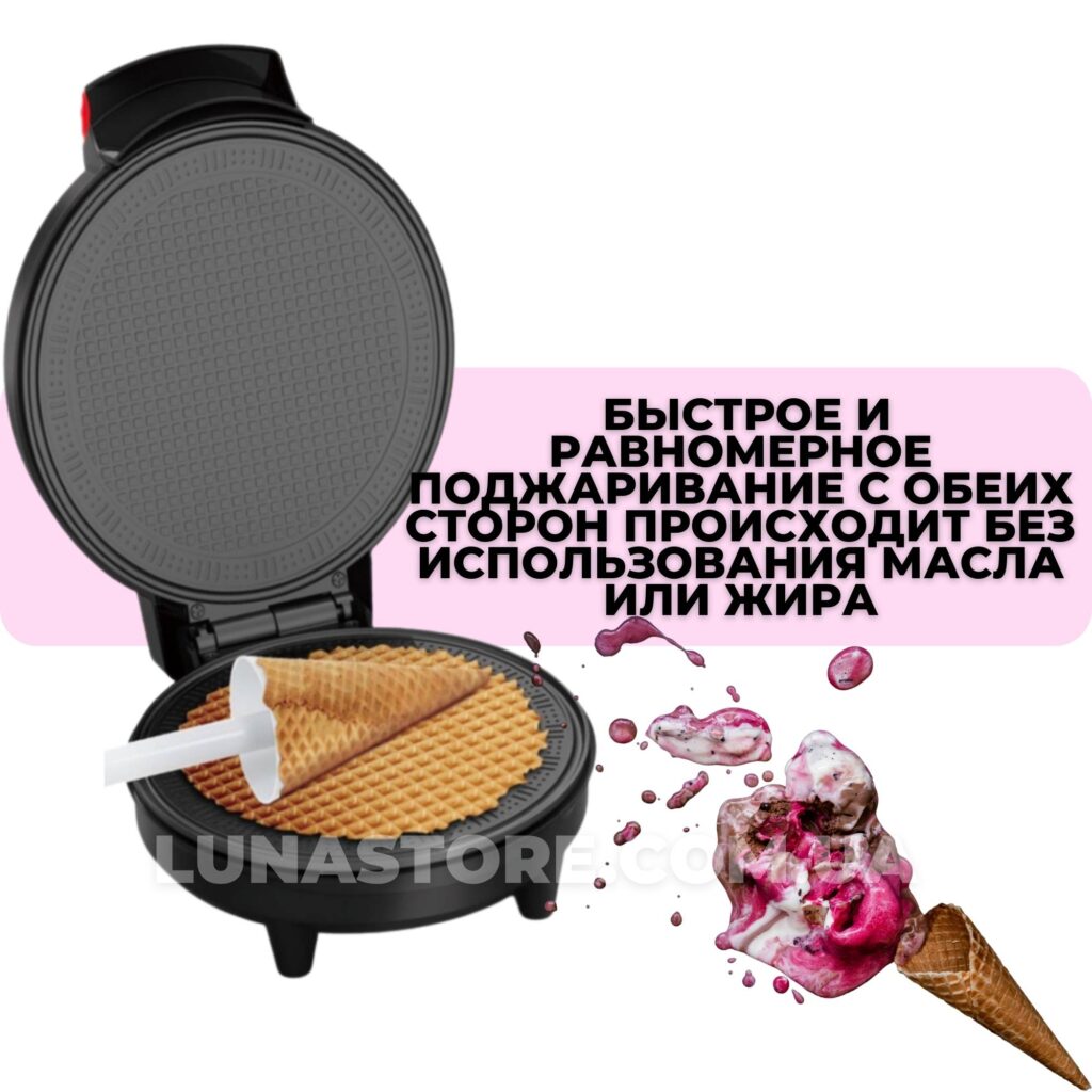 Вафельница электрическая для Тонких Вафель для рожков мороженого для круглых вафель 1200Вт 18см Haeger Черная (HG-220) – Приготовьте домашние вафельные стаканчики и рожки для мороженого за считанные минуты. Оснащена регулятором температуры. Пластины имеют антипригарное покрытие, которое легко чистить и обслуживать.
