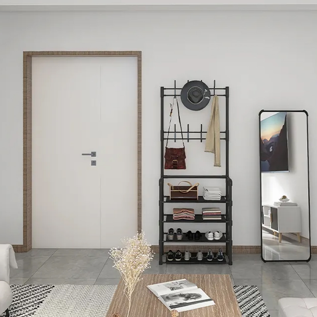 - Під одягом на полицях вішалки зручно зберігати взуття, аксесуари та інші предмети.