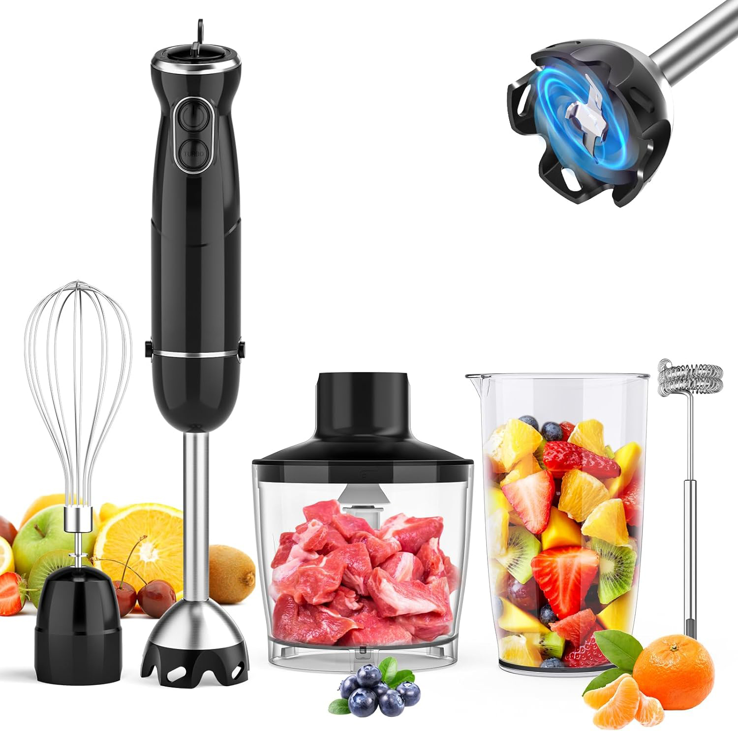 Блендер, подрібнювач, віночок, капучинатор, мірний верстат - Блендер ручний – універсальний прилад 4 в 1 для подрібнення і збивання, збивання молочної піни, який має потужний, але тихий мотор потужністю 1600 Вт.
